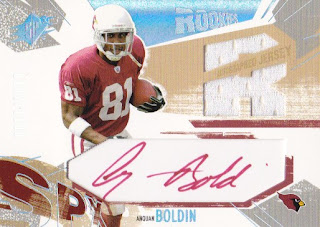 Most recently, he notched 2 TDs in the Ravens victory over the New England Patriots on their way to Super Bowl XLVII. A lot of people gave up on Boldin when he left Arizona, I am glad I didn't, and held on to this beautiful autographed rookie card from the 2003 Upper Deck SPx set. Card #191 is signed in red ink and is #d to 1100.
